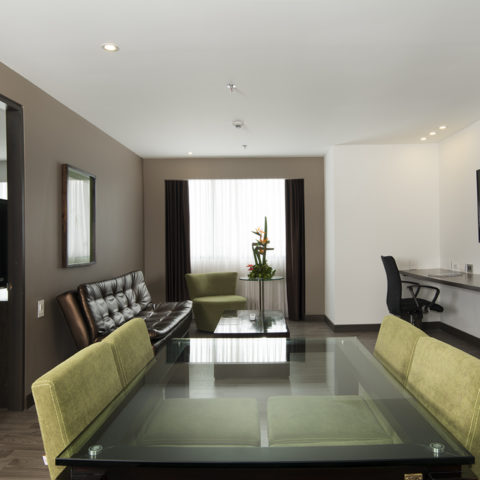 Las 97 habitaciones del hotel son modernas y cuentan con aire acondicionado, caja fuerte para ordenador portátil, armario y baño privado con secador de pelo y artículos de aseo gratuitos. Algunas habitaciones tienen vistas a la ciudad o a las montañas de los alrededores.